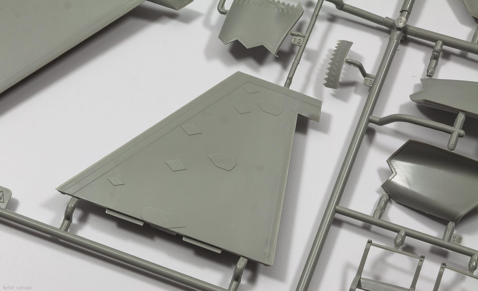 Kadłub wozu składa się z dwóch zasadniczych części, do których doklejamy elementy zawieszenia a następnie wspomniany układ trakcyjny. Górna część „wanny” odlana prawidłowo a co najważniejsze z zachowaniem sporej ilości detali, o które zadbali projektanci.